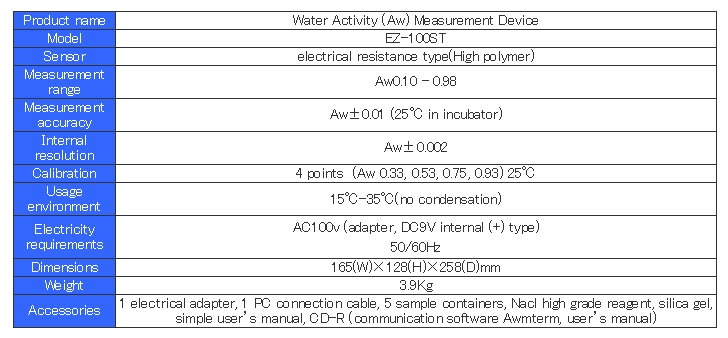EZ-100ST는 이 수분활성도를 쉽고 정확하게 측정하는 장치입니다.