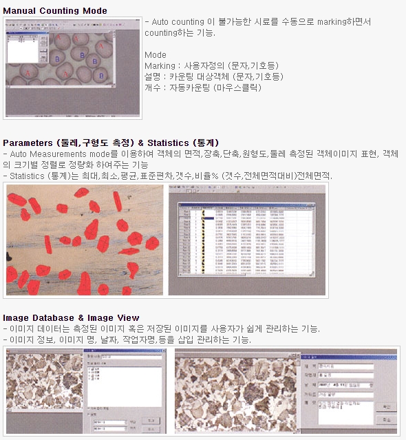 Image Analyzer는 현미경용 디지털카메라의 고화질 영상을 이용하여 영상분석 및 측정하는 프로그램입니다.
