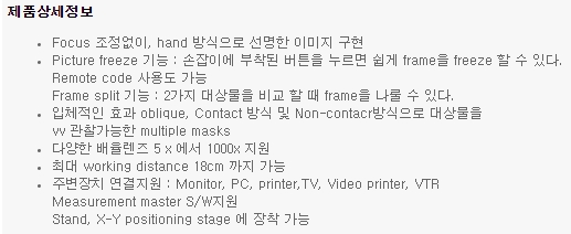 휴대가 간편하여 노트북을 이용하여 현미경의 화상을 저장, 분석 및 측정이 용이한 시스템입니다.