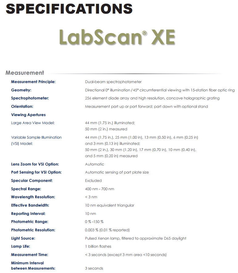 광학적으로 밝은 물질을 정확하게 측정하기 위해 자외선 보정 및 광원의 제어가 가능합니다. LabScan XE를 사용하여 고형분, 분말 및 액체를 포함한 모든 형태의 샘플을 측정할 수 있습니다.